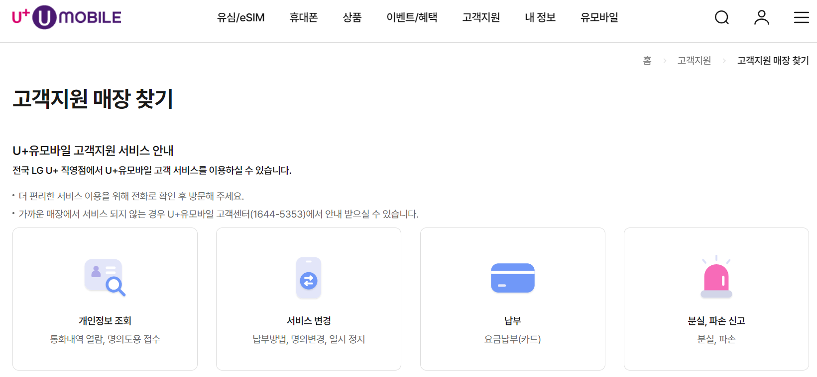 LG U+망을 사용하는 알뜰폰 사용자들을 위해 LG U+는 전국적으로 전문 매장을 확대하고 있습니다. '알뜰폰 플러스'에서는 요금제 가입, AS 상담, 요금 수납 등의 업무를 처리하고 있으며, 매장은 전국의 홈플러스 매장 내에 위치하고 있습니다. 총 8개의 매장이 운영되고 있으며, 지역별로 합정점(서울), 동대문점(서울), 야탑점(경기 성남), 인천작전점(인천), 대전문화점(대전), 대구상인점(대구), 동광주점(광주), 서부산점(부산)과 같이 분포되어 있습니다. 이를 통해 LG망을 사용하는 알뜰폰 사용자들은 편리한 접근성을 가지며, 매장에서 다양한 서비스를 이용할 수 있습니다.