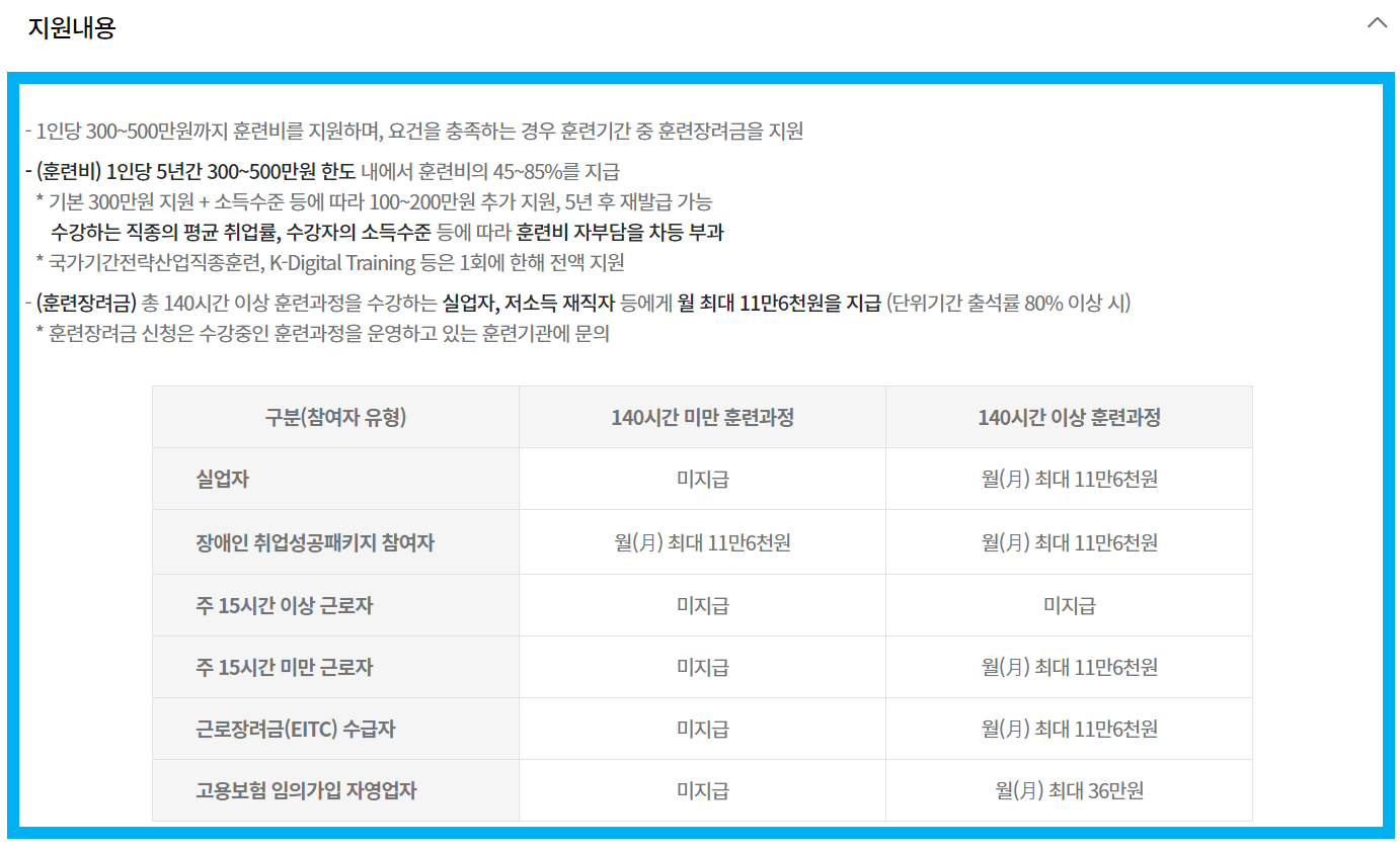 이때 국민내일배움카드를 통해 비용적인 부분을 지원 받을 수 있습니다.
