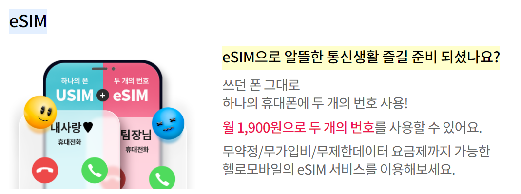 eSIM은 비대면 개통이 신속하게 이루어집니다. 유심처럼 별도의 배송이 필요 없이 신청 후 5분만에 QR코드를 받아 가입할 수 있어 빠르고 편리합니다. 또한, 해외 여행 시에도 USIM 카드를 교체할 필요가 없어 편리합니다.