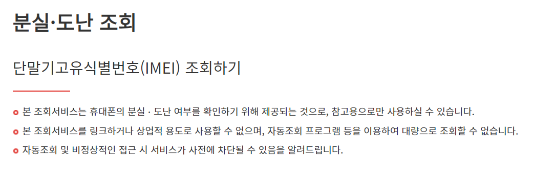 IMEI정보는 휴대폰의 고유번호로, 이동전화 단말기 자급제 홈페이지를 통해 휴대폰 IMEI 정보를 확인하여 부정이용을 방지할 수 있습니다.