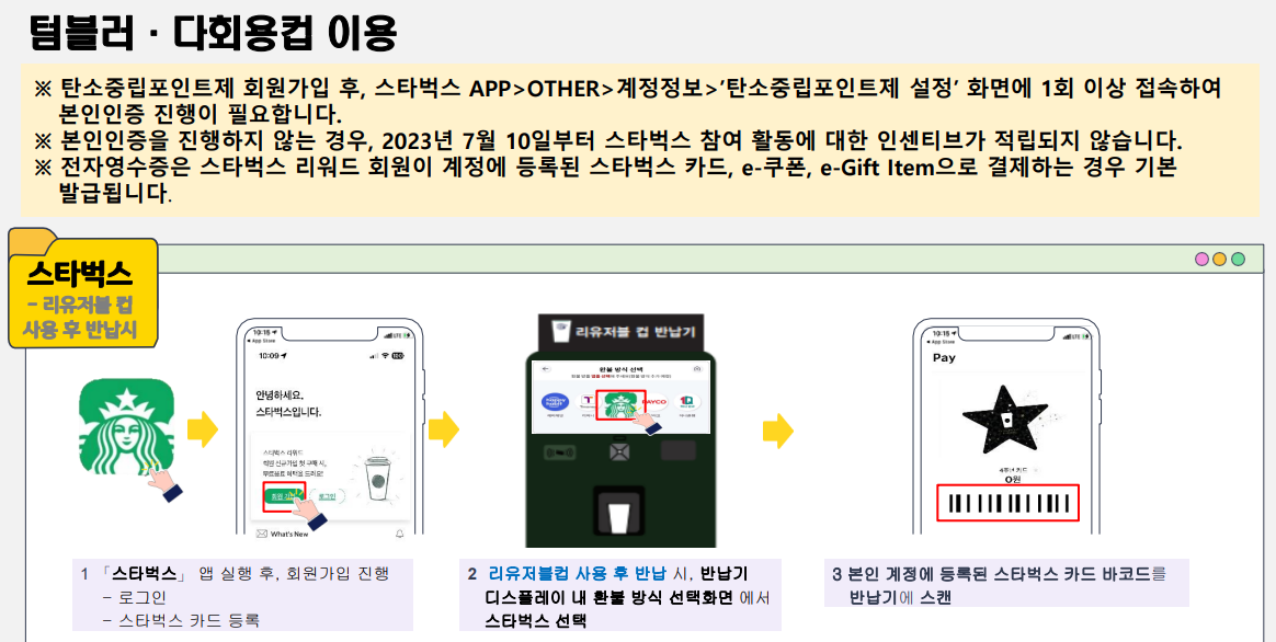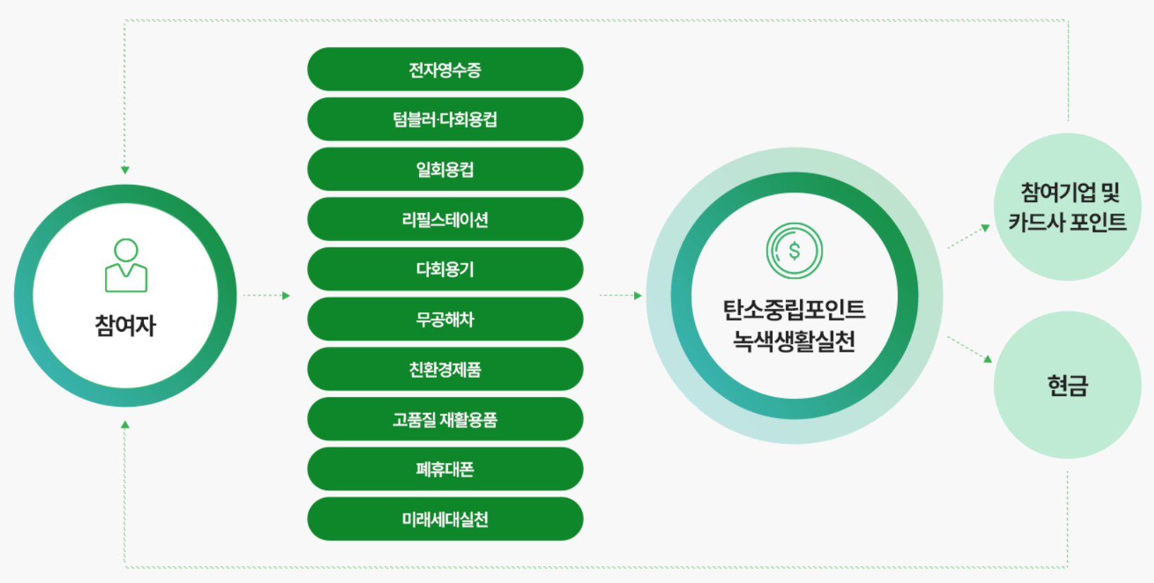 일상생활에서 종이 영수증 대신 전자 영수증을 발급하고, 다회용 컵을 사용하는 등의 작은 노력만으로도 탄소중립 실천포인트제를 실천할 수 있습니다.